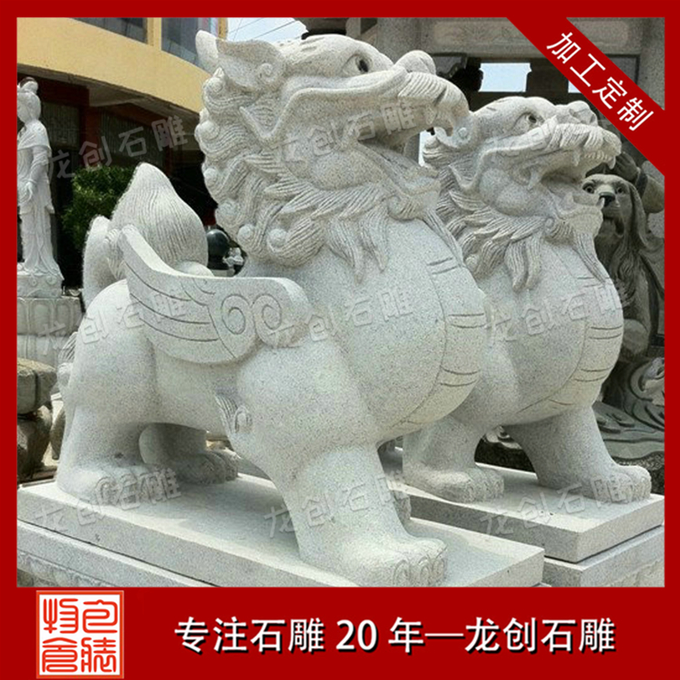 石雕貔貅是中國古代神話傳說之產物,作為祥瑞文化的代表性符號之一,其造型形態從出現到現在,經歷了漫長的歷史更替,在中國大地上歷劫不衰,形成具有民族特色,而且深入民心,群眾基礎極為深廣的藝術形態。在數千年的風雨歷程中,石雕貔貅集眾多審美需求于一體,,形式日臻完善,不僅具有豐厚的民族文化積淀,凝聚著中華民族的造物智慧,彰顯出獨特的藝術審美特征,成為中國民間傳統文化與現代文明相互融合的具有典型性的造型形態符號,以蓬勃旺盛的生命力,昂首挺胸地步入信息時代。
