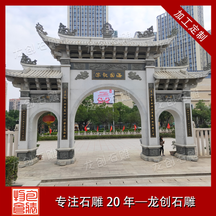 石牌樓制作所采用的原材料是決定石牌樓價格的主要因素。市面上適合雕刻石牌樓的原材料有花崗巖、青石、五蓮紅、芝麻白、芝麻灰等。一般石牌樓雕刻采用青石和花崗巖的比較多,這種石料本身質地好,而且花色紋路選擇多,加上這種石材價格比較實惠,適合在不同的場合中使用。而五蓮紅和花崗巖這兩種石材價格稍微高一些,石牌樓根據用的材料質地不同以及原材料的數量不同,石牌樓價格有很大的變化。