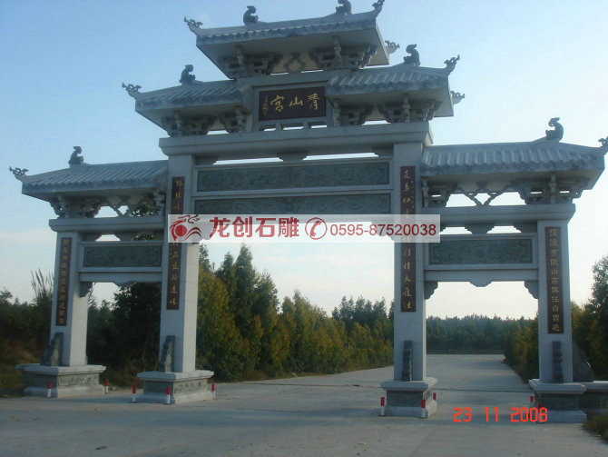 門樓牌坊雕刻的樣式,門樓牌坊設(shè)計時沒有樓的構(gòu)造,既沒有斗拱和屋頂,而門樓牌坊設(shè)計時有斗拱和屋頂,它有更大的烘托氣氛。但是由于它們都是我國古代用于表彰、紀(jì)念、裝飾、標(biāo)識的一種建筑物,而且多用于主要街道起點、交叉口、橋梁,古代多用于宮苑、寺觀、祠堂、衙署等處,景觀性很強(qiáng),起到點題、框景、倩景等效果,長期以來老百姓對“坊”、“樓”的概念不清,所以到最后兩者成為一個互通的稱謂了。牌坊石雕、石雕牌坊、牌坊,現(xiàn)在很多石雕廠為了利益把石雕之本已經(jīng)拋棄了,他們建造的門樓牌坊都是為了應(yīng)時之景,雕刻工藝粗糙,已經(jīng)徒有其表,門樓牌坊原本的神采和韻味乃至意義都不復(fù)存在。