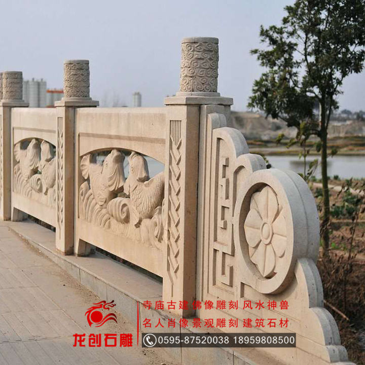 石雕欄板在仿古建筑、護城、護河的圍護方面有著其他材質的欄桿所無法比擬的優勢。欄板雕刻 工藝精美,欄板上面雕刻著我國傳統的吉祥圖案,也有文化景區使用石雕欄桿敘述當地的文化傳統。石雕欄桿材質常使用天然石材的漢白玉欄桿大理石欄桿、青石欄桿等,經久耐用,使用壽命長。