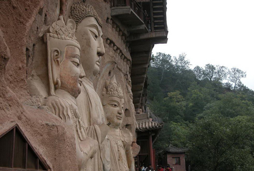 麥積山石窟為中國(guó)四大石窟之一,其它三窟為:龍門石窟、云岡石窟和敦煌莫高窟。麥積山石窟屬全國(guó)重點(diǎn)文物保護(hù)單位,也是聞名世界的藝術(shù)寶庫。麥積山位于甘肅省天水市東南約35公里處,是我國(guó)秦嶺山脈西端小隴山中的一座奇峰,海拔1742米,但山高離地面只有142米,山的形狀奇特,孤峰突起,猶如麥垛,因此人們稱之為麥積山。