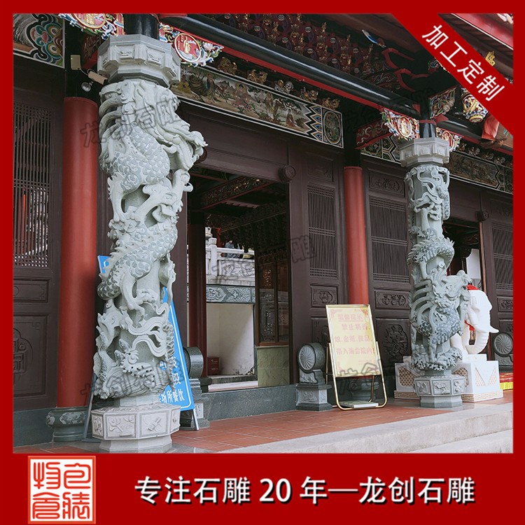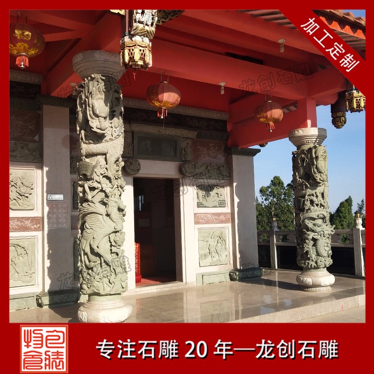 常見寺廟龍柱的制造石材有青石、白石以及其他花崗巖石料,如果雕工要求很復(fù)雜的,一般是以青石為原材料,青石的石料單價(jià)也要貴很多。做工簡單的,則一般建議用普通的白石即可。普通的白石龍柱會比較便宜,一般三四萬塊就能買到一對合適的3米高龍柱,以浮雕技藝為主。而真正價(jià)格較高的龍柱則一般是青石龍柱。龍柱一般有單龍和雙龍之分,雙龍的略貴一些,單龍的便宜一點(diǎn)。龍柱上面除了雕刻龍外,還會雕刻很多其他圖案。中華民族的圖騰是龍圖騰,中國人是龍的傳人,所以龍柱是無論什么國內(nèi)宗教場所、公眾場所都會擺立的。