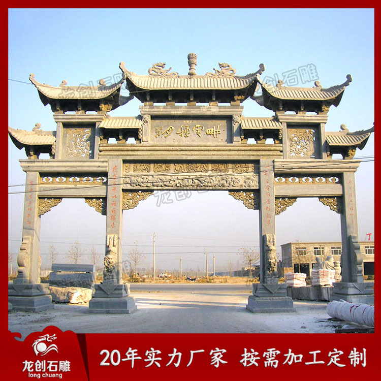 鄉鎮路口三門石雕牌坊款式介紹