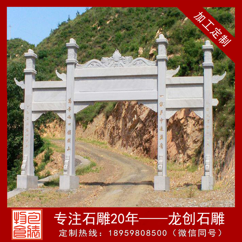 石雕石牌坊定制價格中了中國古建筑的較有特征的構(gòu)件,設(shè)計尺寸隨著擺放地方的不同也有所不同,有的地方適合擺放總寬6.0米、7.0米、8.0米、9.0米、10.0米、12.0米、13.0米、16.0米、20.0米、28.0米等等,所以說牌坊設(shè)計尺寸要根據(jù)地方的不同來設(shè)計,找龍創(chuàng)石雕這種專業(yè)的石雕牌坊雕刻廠家會比較有保障些。