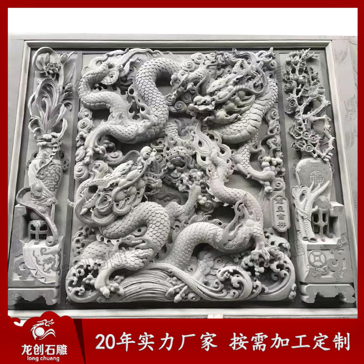 仿古青石浮雕樣式常見的雕刻題材有人物、動物、花鳥的寫實。依據雕琢者的想法或按照圖畫利用浮雕的方法雕琢而成的工藝品。歷經千年開展,早已經有了許許多多的有名作品,其間石雕壁畫圖片也是五花八門,令人目不暇接。