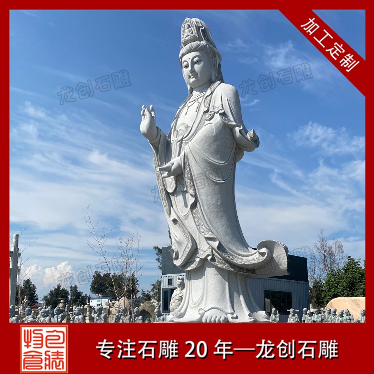 石雕滴水觀音造型可以是站姿,也可以是坐姿,雖然滴水觀音的造型很經典,但其身上的背光、圓光、瓔珞等這些都是可以另外定制的,只是不同的樣式在價格上有差別。石雕滴水觀音生產廠家,選惠安龍創石雕。