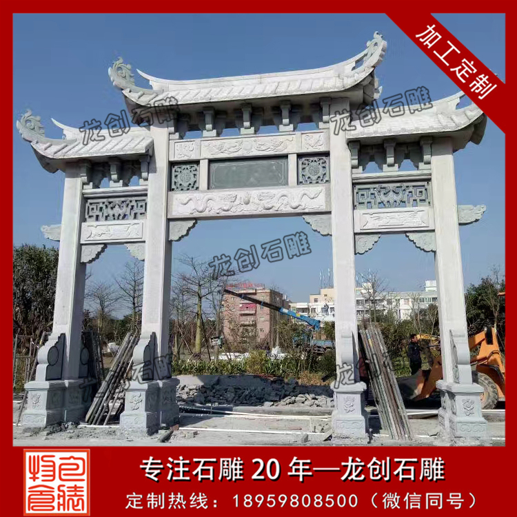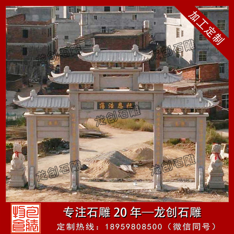 2、現(xiàn)代石雕牌坊設(shè)計(jì)要注意和實(shí)地環(huán)境的結(jié)合。現(xiàn)代化的石雕牌坊建筑可以是在休閑區(qū)域,也可以是在商業(yè)廣場,還可以在景區(qū)內(nèi)建造,常見的就是在仿古街的入口處修建石雕牌坊,既能夠體現(xiàn)古色韻味又能夠吸引游人的關(guān)注。如村莊牌坊的修建,就要和村莊的風(fēng)俗文化相結(jié)合,只有這樣才能和當(dāng)?shù)丨h(huán)境文化融為一體。無論是在哪里進(jìn)行建造石雕牌坊,一定好和當(dāng)?shù)氐沫h(huán)境進(jìn)行有機(jī)的結(jié)合,這樣才能讓建筑和環(huán)境融為一體,才能讓建筑為周圍的景色帶來亮點(diǎn)。